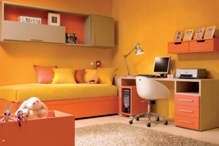 Спальня «Цитрус» является превосходным вариантом для тех деток, которые обожают яркие краски, всегда активны и не любят сидеть на месте. Цвет этой мебели подталкивает к движению, поднимает настроение и придаёт сил. Письменный стол сможет порадовать ребятишек, обожающих творить, а большое количество полок и ящиков позволит разместить все вещи малыша. И, конечно же, никуда без комфортабельной кровати, ведь после активного дня необходим хороший отдых.