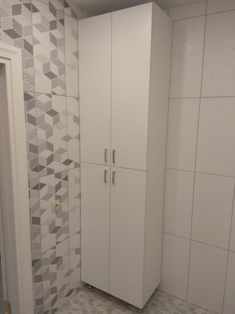 Это корпусная мебель, изготовленная из влагоустойчивого ЛДСП. Она хорошо переносит разные температуры, воздействие пара от горячей воды. Её можно устанавливать в любом удобном месте, даже возле полотенцесушителя. Элегантный шкаф на металлических ножках может занять свободный угол. Благодаря компактным размерам, он не перегородит проход.
