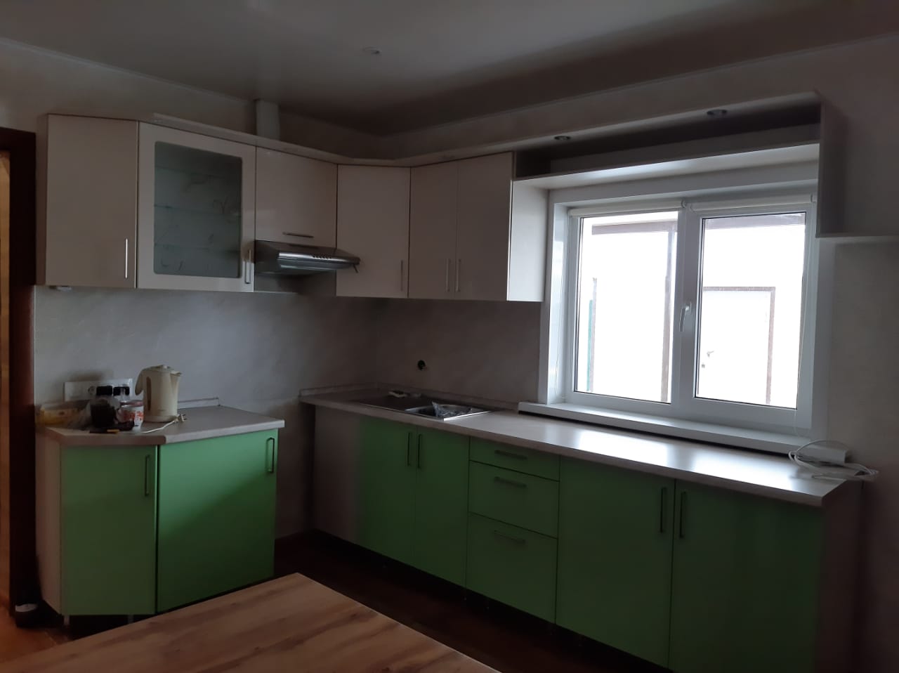 Сочетание двух спокойных оттенков: белого и светло-зелёного, радует глаз и создаёт умиротворяющую атмосферу. На такой кухне будет приятно не только готовить, но и устраивать семейные ужины.