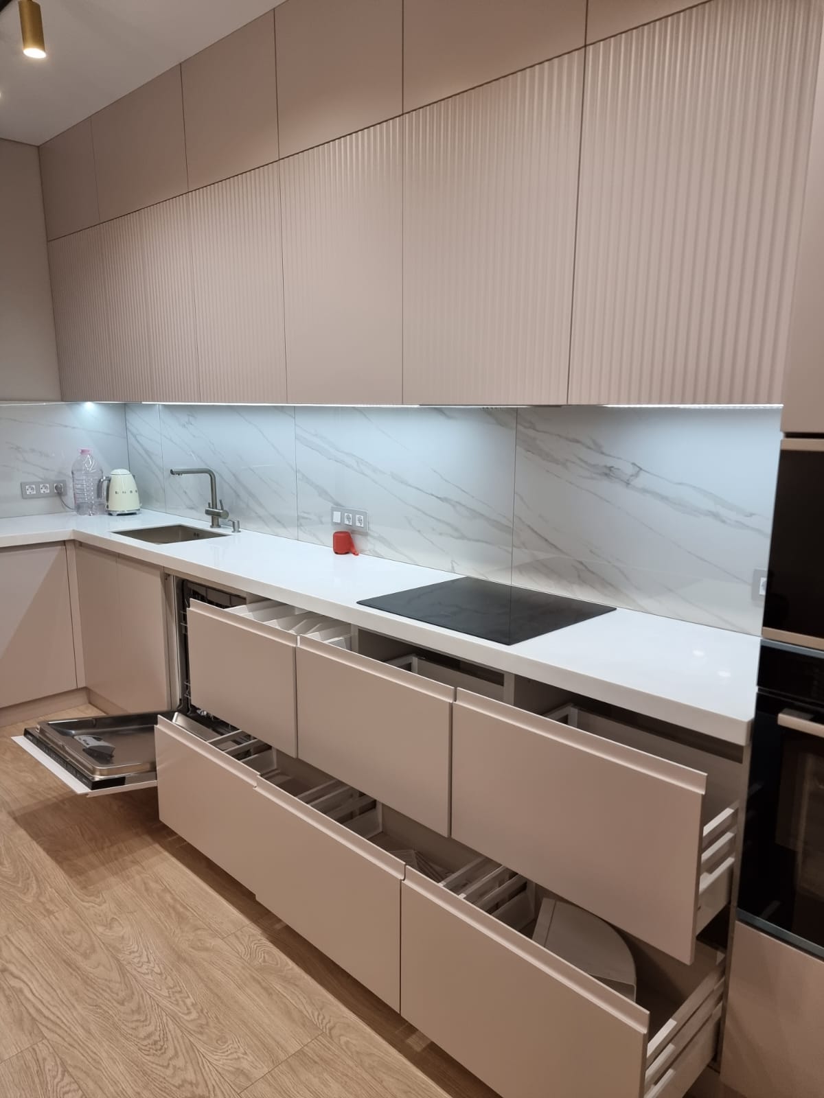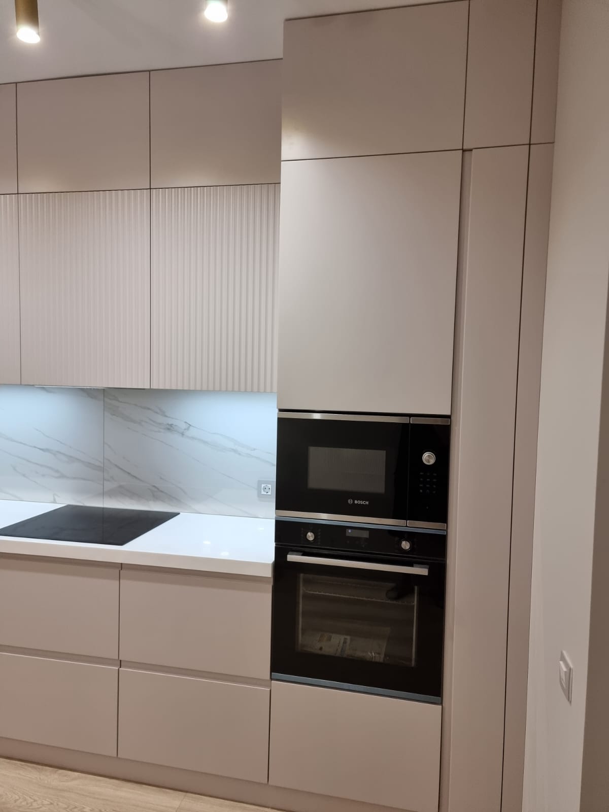 Представляем вашему вниманию кухню Карамель в молочно-бежевом цвете. Гарнитур имеет вместительные верхние и нижние шкафы, просторную столешницу, выдвижные ящики и внутренние системы хранения. Конструкция кухни позволяет встроить в нее всю необходимую технику, что позволит сэкономить полезную площадь дома или квартиры.