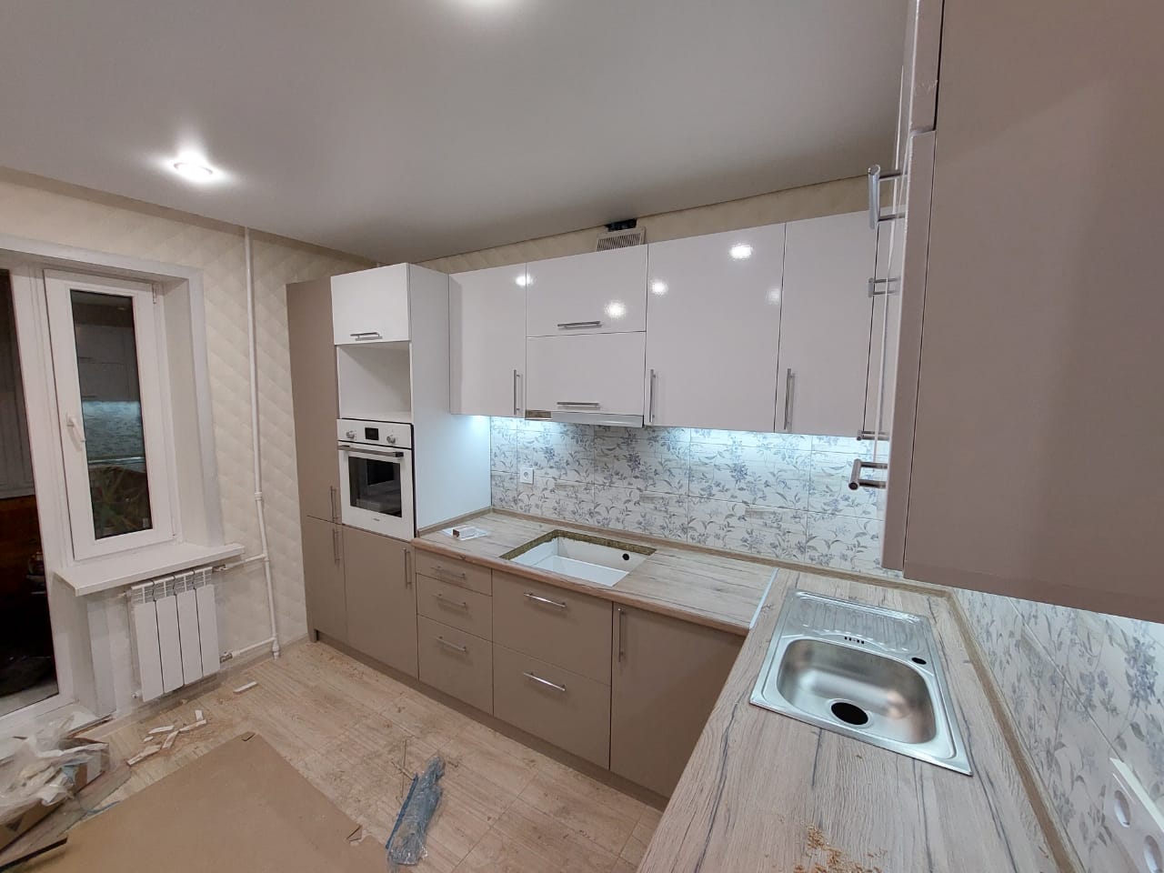 Кухня «Лилия» – прекрасный выбор для дома и квартиры. Это светлый угловой комплект в современном стиле, который отлично впишется в любой интерьер. Воздушные оттенки сероватого, кремового с имитацией древесного рисунка зрительно расширяют пространство, делают обстановку элегантной и стильной.