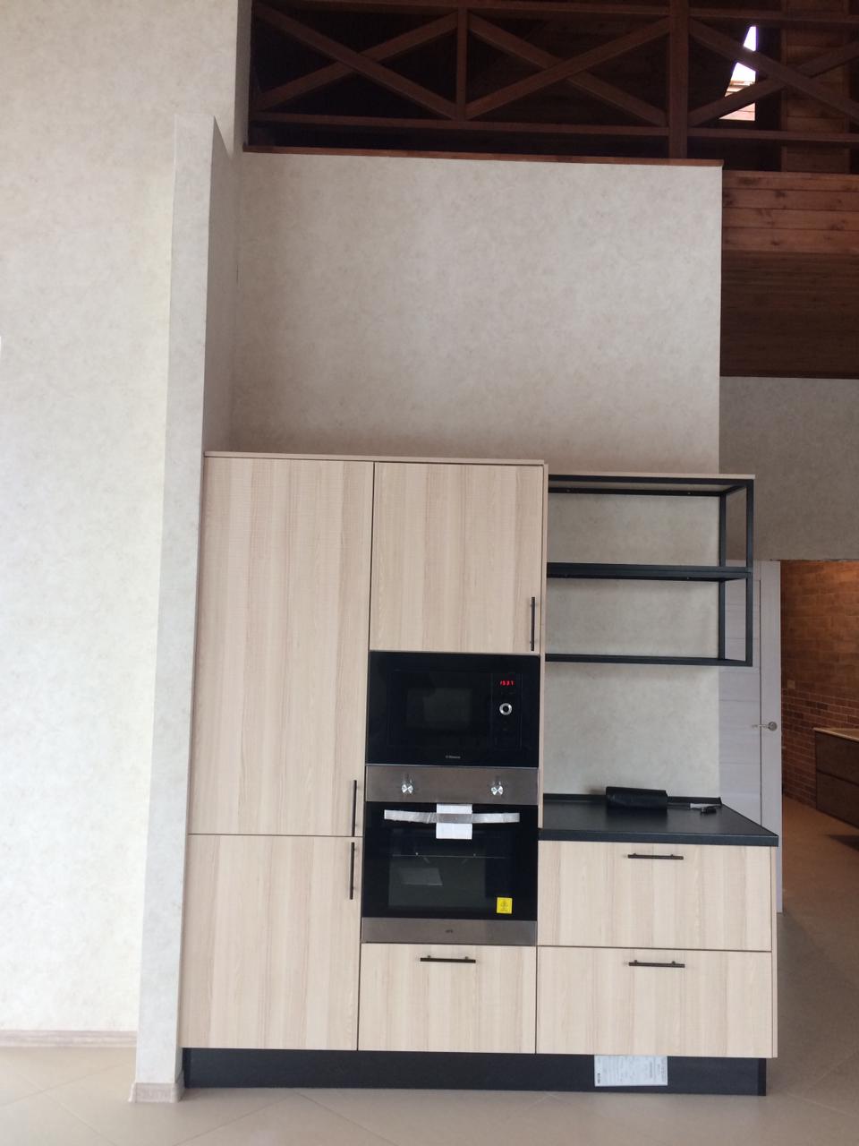 Не стоит беспокоиться о системе хранения кухонной посуды и аксессуаров — комплект мебели для кухни «Вилла» включает отдельно стоящий шкаф, выполненный в той же стилистике элегантного минимализма. Он оснащен компактной рабочей столешницей, закрытыми модулями для хранения и двумя открытыми полками. Также в нем находится встроенная кухонная техника. Конструкции исполнены в расчете на длительный срок эксплуатации с максимально надежной фурнитурой. Одноярусная кухня «Вилла» — не просто компактное и эргономичное, но и модное дизайнерское решение.