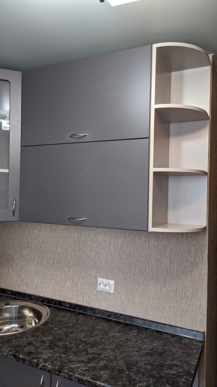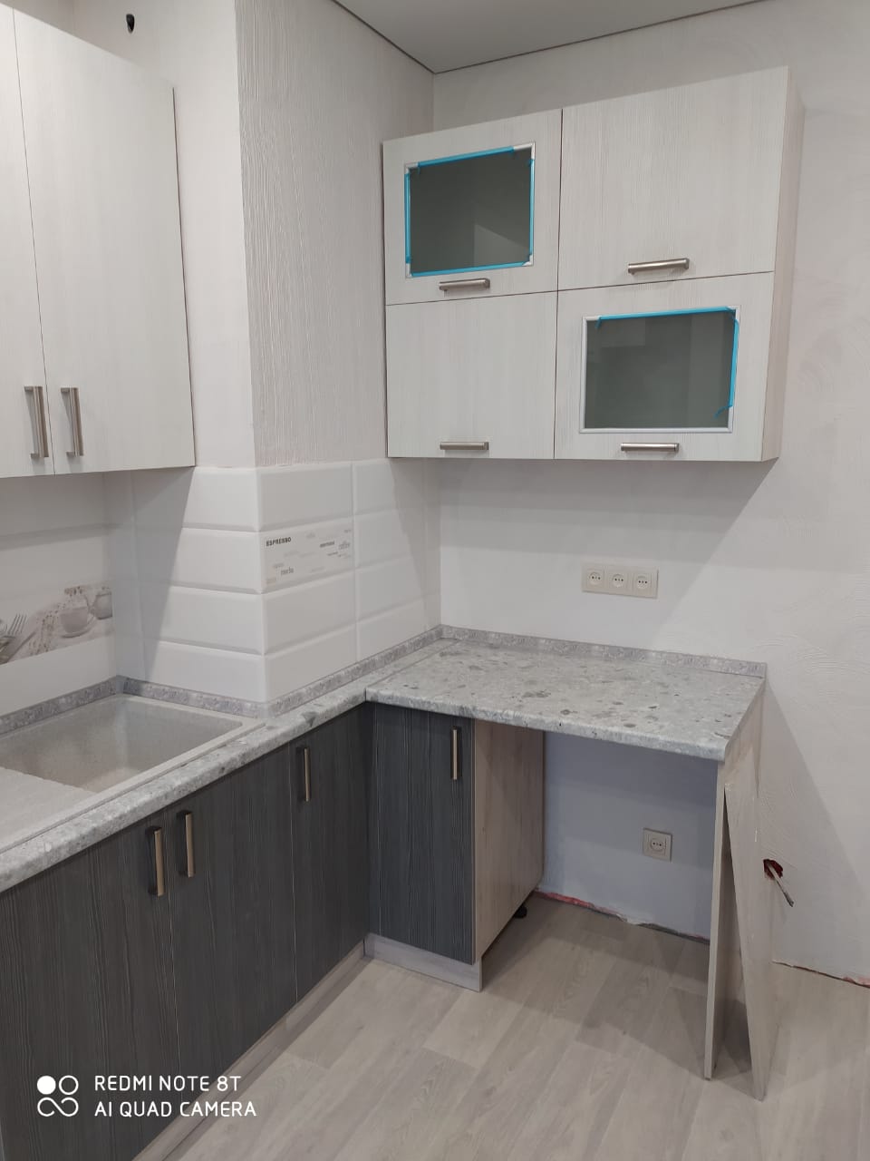 Материал кухонного корпуса и фасадов – ЛДСП. Это делает покупку мебели экономичной при достойном качестве и стильном оформлении. За полками и поверхностями легко ухаживать, они просто и быстро чистятся, много лет сохраняют первоначальное состояние.