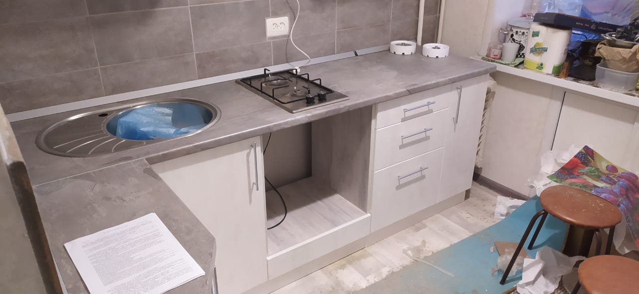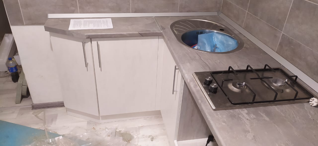 Белые фасады шкафов прекрасно сочетаются со столешницей в любом цветовом исполнении, поэтому для ваших интерьерных решений остаётся большой простор.