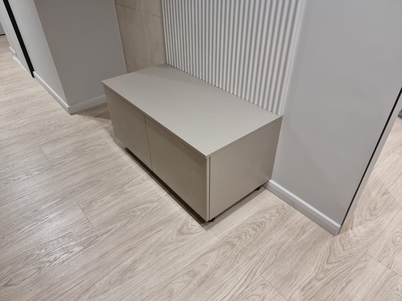 Комплект состоит из двух предметов, которые удобно располагать рядом. В него входят многоуровневый шкаф и закрытая банкетка для обуви. Это позволяет рациональнее использовать свободное пространство.