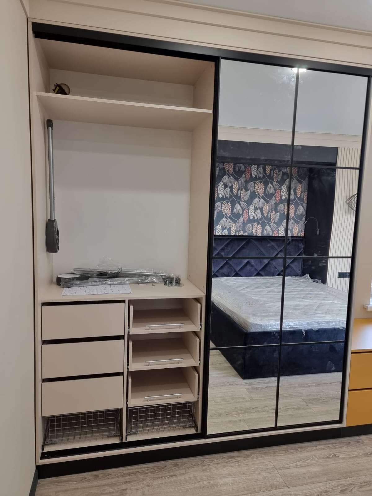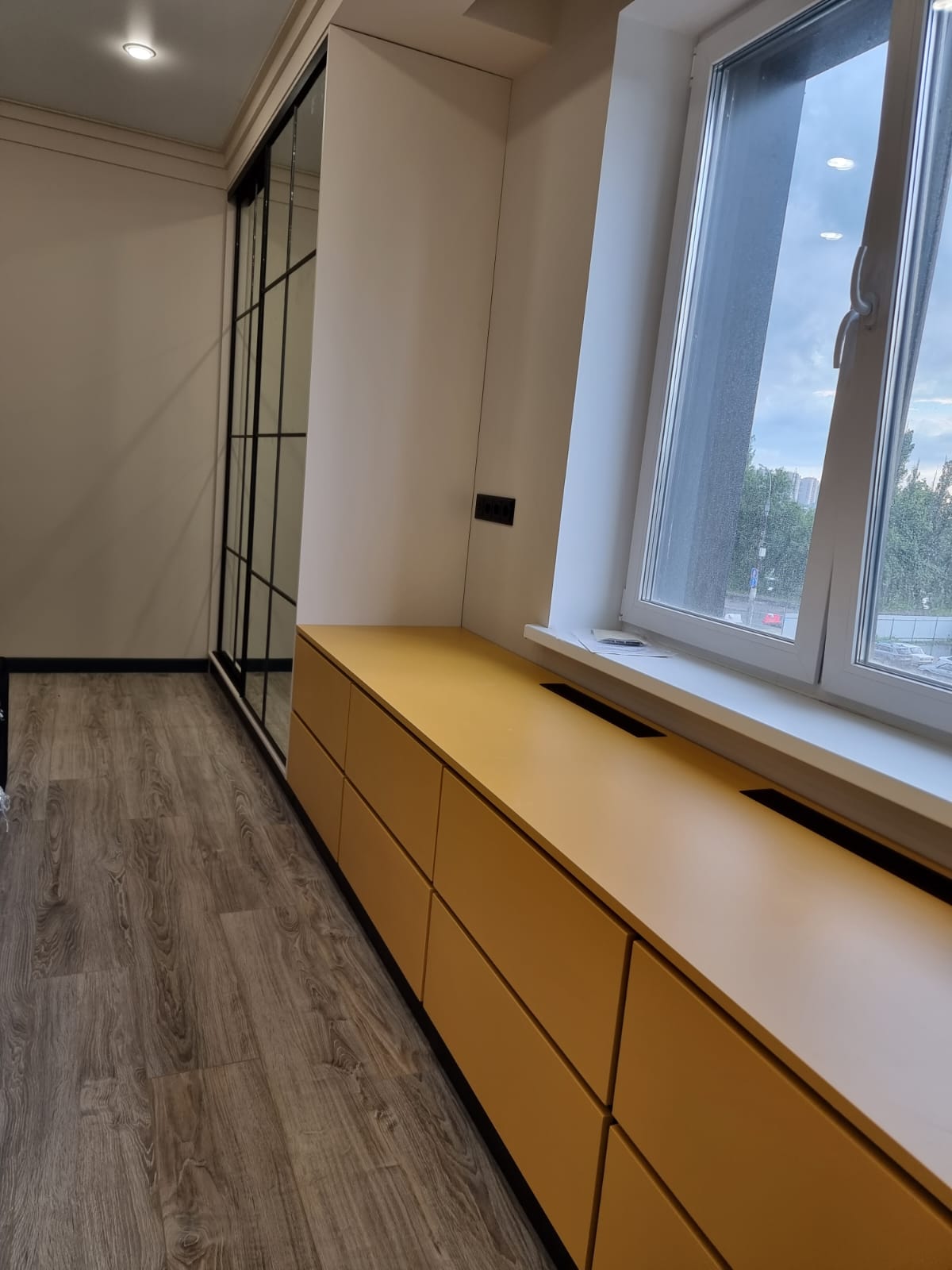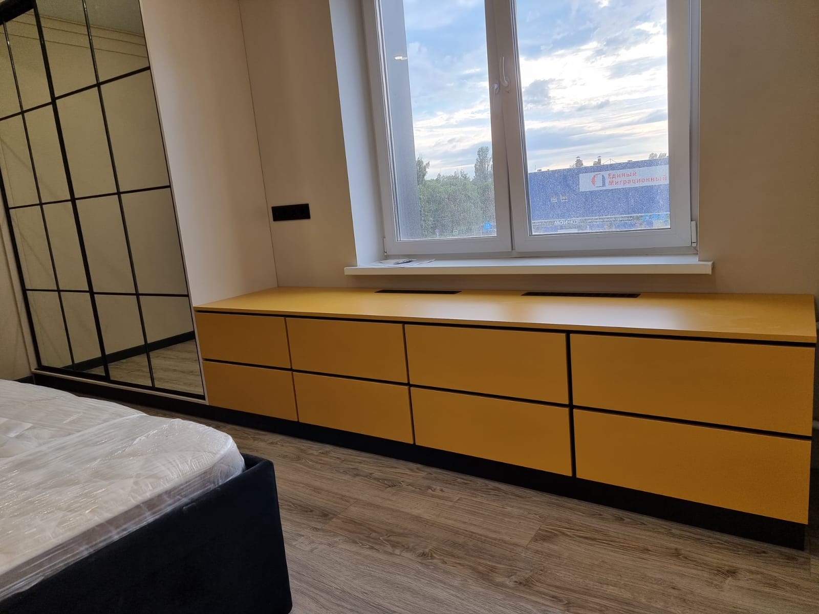 Шкаф-купе с комодом подчеркнёт отменный вкус хозяев и респектабельность обстановки в спальне. Это эффективное и функциональное решение проблемы хранения. Сочетание зеркальных полотен и ярко-желтого фасада создаст стильный акцент в интерьере. Надежная фурнитура обеспечит легкость эксплуатации. Конструкцией предусмотрены секции различной высоты для всех типов одежды и аксессуаров. Модель органично впишется в помещения в стиле модерн, хай-тек, индастриал. Функциональная система хранения эргономична и удобна в использовании, предусматривает всё необходимое для аккуратного размещения любых предметов.