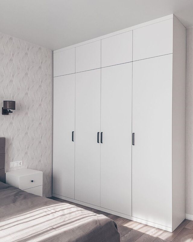 - В спальне важно сэкономить место и не загромождать комнату. Распашной шкаф белого цвета в закрытом состоянии существенно расширяет пространство и не занимает много места.