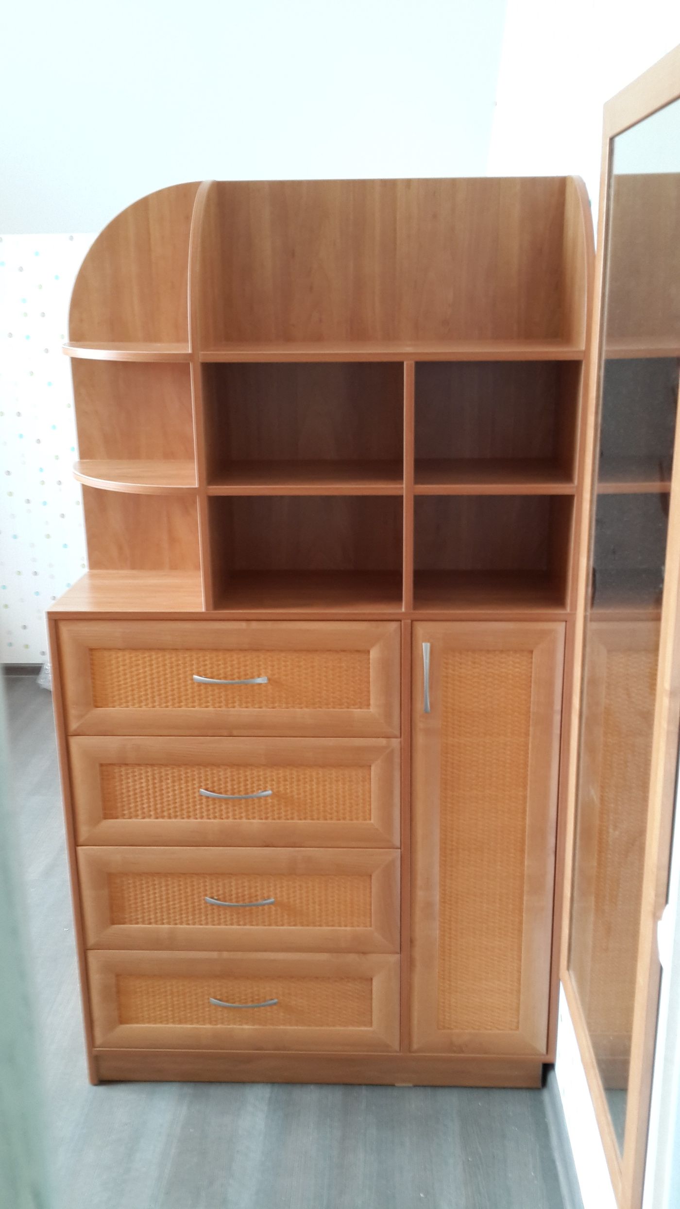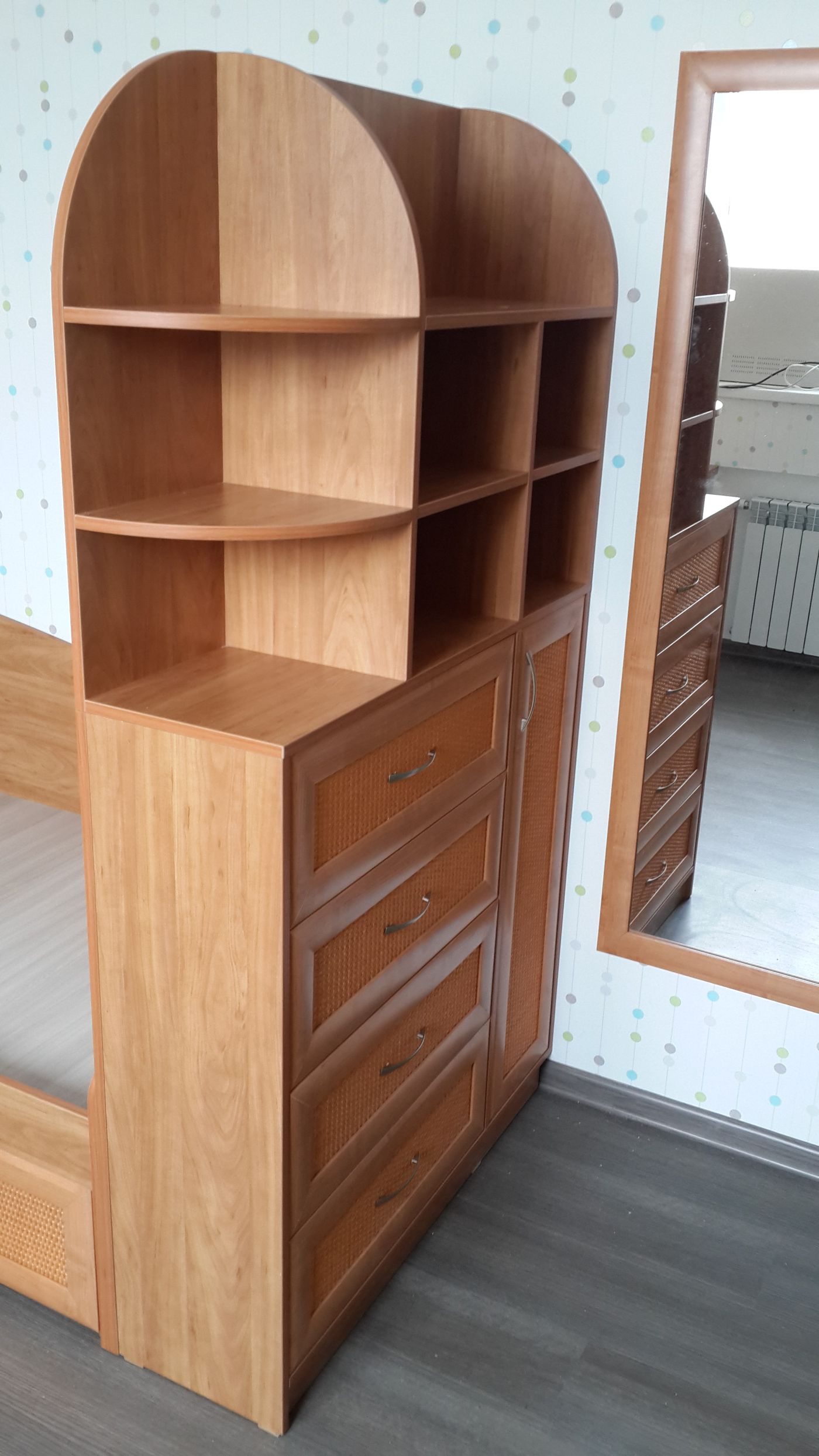 Небольшая детская спальня «Ольха» сделает даже самую крохотную комнату уютной и функциональной. Совмещение кровати с комодом и дополнительными полками является идеальным вариантом, который экономит свободное пространство и при этом делает интерьер интересным и оригинальным. Выдвижные ящики подходят для хранения как школьных принадлежностей, так и разных бытовых мелочей. Навесная полка позволяет всегда держать под рукой необходимые книги. Оригинальные накладки из МДФ украшают спальный гарнитур, подчеркивают оригинальность и качество мебели.