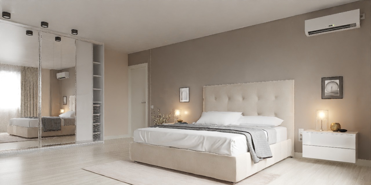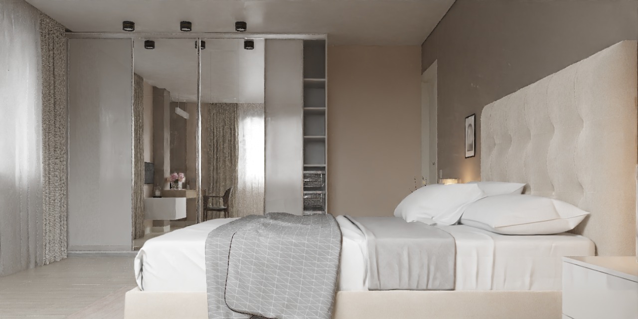 В гарнитур входит большой шкаф-купе. Полки, ящики и секции разных размеров позволяют разместить в нем много одежды, постельного белья. Мебель устанавливается вдоль всей стены или встраивается в нишу. Большие зеркала на фасаде визуально расширяют пространство. Прикроватные тумбочки имеют настенный тип монтажа, что, добавляет интерьеру изюминку.