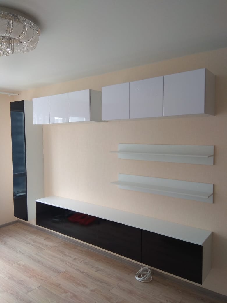 Стенка для гостиной Мокко — это комплект подвесной мебели, идеально подходящий для современных интерьеров в стилях минимализм и хай-тек. Глянцевые фасады, сочетание темно-коричневого и белого оттенков, наличие вместительных и декоративных секций полностью соответствует модным трендам сезона. Модель может быть установлена в помещениях любого метража, в том числе малогабаритных квартирах, студиях, где на счету каждый сантиметр.